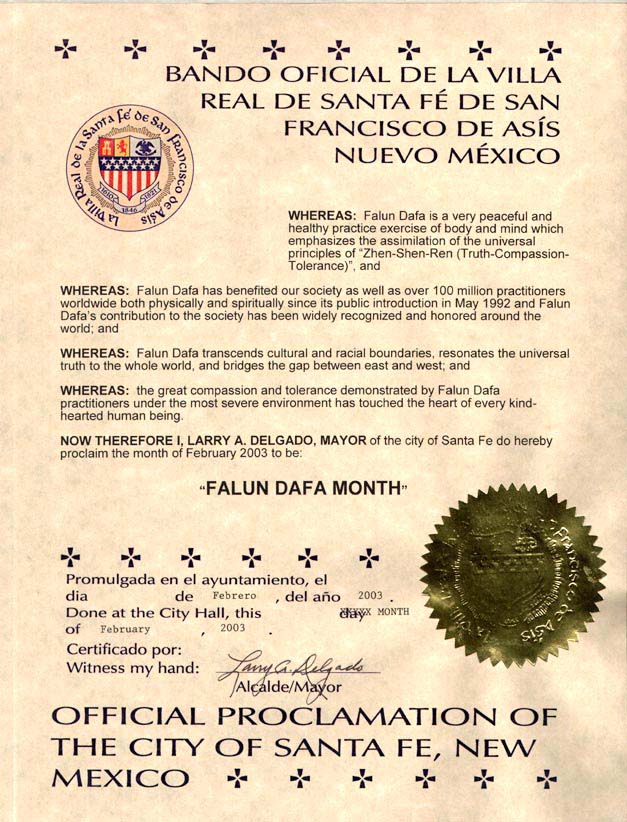 因此,我,桑塔菲市市长拉里.德尔嘎多(Larry A. Delgado),在此宣布2003年2月为