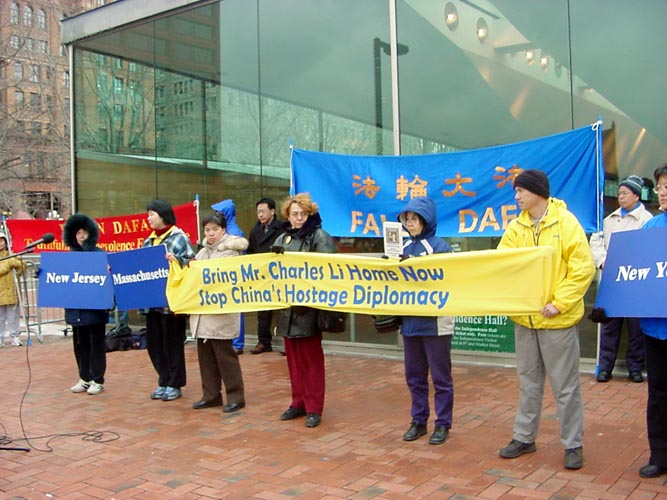 【明慧网2003年3月8日】营救李祥春(Charles Li)车队一行6人从波斯顿出发,冒着暴风雪途经纽约、费城至首府华盛顿DC。3月6日下午三点半在以自由民主著称的费城自由钟前举行了新闻发布会,呼吁各界人士伸出援手,让美国公民、法轮功学员李祥春早日获得自由。