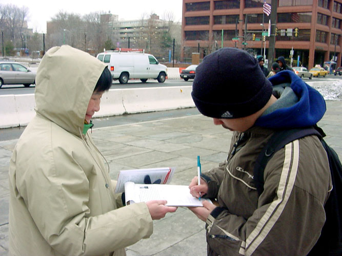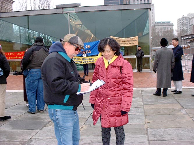 游客为营救美国公民李祥春签名来自波士顿的穆琪琪女士说,费城是美国第一部宪法立法的地方。然而今天美国的公民被中国政府非法拘留迄今已经有45天了,她希望通过这次汽车之旅让更多的人帮助呼吁释放美国公民李祥春。1776年,托马斯杰弗逊在《独立宣言》中阐述道:“我们认为下述真理是不言而喻的:人人生而平等,造物主赋予他们若干不可让与的权利,其中包括生存权、自由权和追求幸福的权利。”1791年通过的美国宪法修正案的第一条即规定美国人民享有宗教自由、言论自由、出版自由、和平集会的自由以及向政府请愿的权利。然而今天美国公民的信仰自由也受到了中国江氏政府的威胁。
