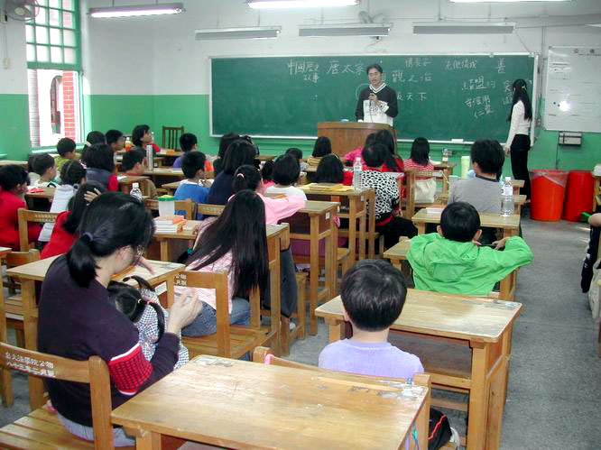 学法时,因各班进度不同,在各自教室学法。上才艺课时,「中低年级班」及「高年级班」则集中在一个教室一起上课。本次才艺课由一位辅导员讲了几则关于唐太宗的小故事,说到唐太宗,很自然就想起的一首诗:「忆长安」,因此辅导员就带领小弟子们背诵一遍:秦川山水变,长安土下存。盛世天朝去,转眼千百春。何处寻太宗,大法度唐人。