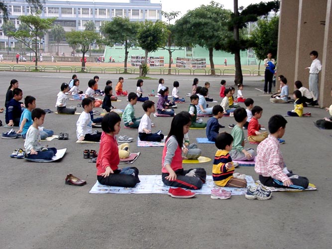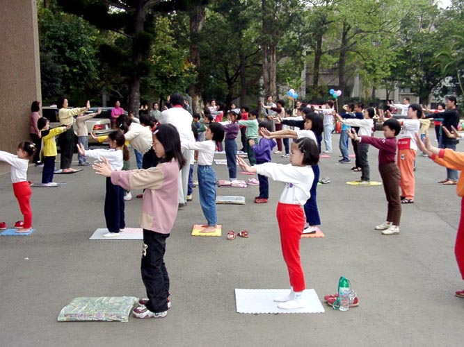 下午的活动在桃园农工由五套功法的炼习拉开序幕,对带小孩来的家长而言,看着自己家中的宝贝,与几十位小弟子一同专注的炼功,耳中听着熟悉的炼功音乐及师父的口令,真有一种说不出的喜悦。