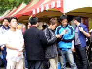 我们的演出排在所有社团的第一个,弟子们从容不迫的做好各自在各场中的角色,在这其中,我感觉整个校园的空气似乎因为我们的正念演出,而得到净化,围观的人,无不全神专注在我们的表演上,几乎也融入了剧情中。当表演进行到「赵明释放回爱尔兰」一段时,我们听见台下观众热烈的掌声。这时,学员们开始在人群中发资料、征签……几乎所经之处,人人都是求索简介的,想更进一步的认识事实真相以及故事内容。