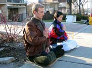图文:多伦多法轮功学员在中领馆前齐发正念