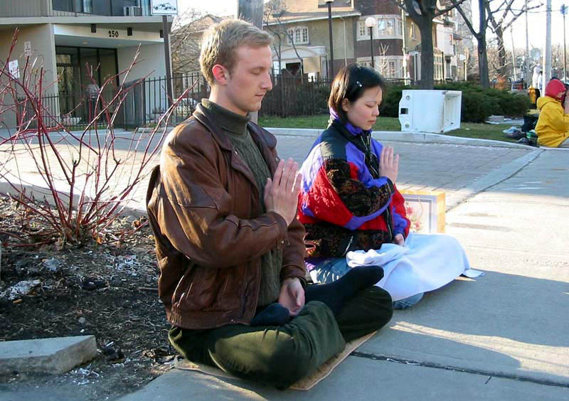 【明慧网2003年4月13日】为配合起诉中国的邪恶独裁者江xx的法律程序,4月12日下午多伦多大法弟子汇集在中领馆前整体发正念,清除一切破坏大法的邪恶因素,清除另外空间的干扰,用强大的正念支持对邪恶之首江xx的正义审判。