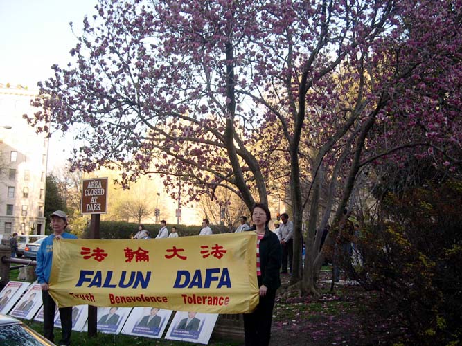 四月的华府,樱花艳丽,温暖的春意,将江氏费尽心机经历四年也无法压垮的法轮功学员托显得更坚毅、成熟。