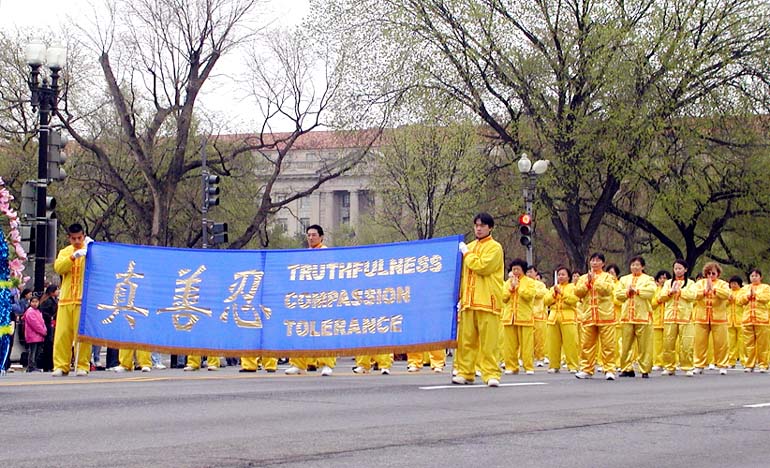 今天,法轮功学员为美国华盛顿樱花节游行开路,给我们带来这样的启示,法轮功学员正透过对江XX的起诉案,请全球参与、支持申张正义的大审判;告诉世人正在中国发生的镇压;告诉世人法轮功学员“承受无名困难、呼唤正义良知”的大善之举。