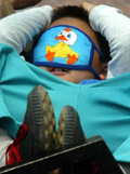 ![]() 图为北京用口罩蒙眼睛的男孩 |