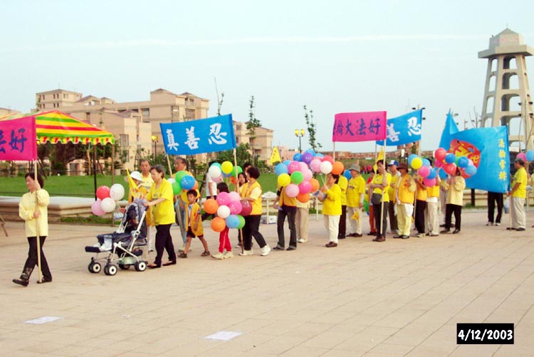 此次的洪法游行对个人也是提高的过程。炼功点上有一老年同修修炼一年多,不大敢参与较长时间的活动,因怕不能随意上厕所,每天在炼功点上炼完一小时功就会上厕所去。此次鼓励他参加游行,前后三小时没停地走,也没上厕所,就这样去了怕心,隔日起炼功再也没看他中途去上厕所了。我想每一次的走出去参与大法活动,都是一次提高的过程!另有一同修游行中被朋友看到了,因此有了向朋友深入讲真相的机会。活动中,整体的协调体现着凝聚的能量!走在大法队伍中那种神圣、慈悲的场让我的心感动!