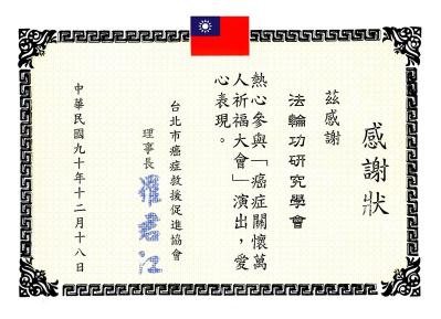 台湾法轮功研究学会收到各界感谢状 【明慧网】