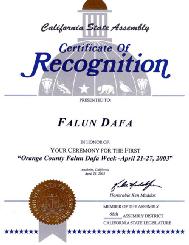 你们在首届“2003年4月21至27日橙县法轮大法周”的庆典仪式。
