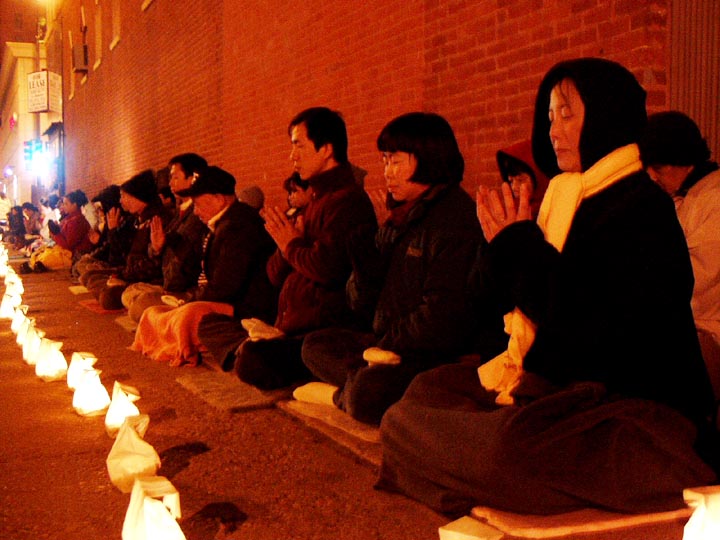 图片:纪念4.25 大法弟子芝加哥中领馆前烛光守夜