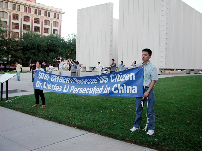 美国达拉斯法轮功学员集会纪念“4.25”四周年