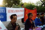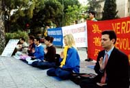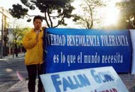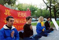 纪念“4.25” 西班牙法轮功学员中使馆前要求中国政府立即停止迫害法轮功(图)