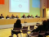 | 法轮功学员代表在国际人权协会记者招待会上发言 | 大会全票通过谴责中国迫害法轮功的决议 | 会上观看天安门自焚真相录像 |