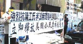 法轮功学员在接下来的几天里,将连续在旧金山中领馆前静坐请愿,抗议中国政府关押李祥春。