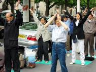 日本近畿学员十四、十五日大阪领馆前正念声援起诉人间首恶(图)