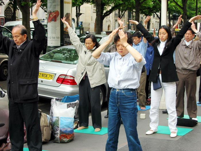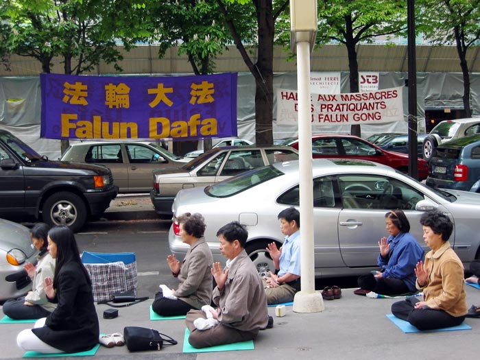 图片报道:法国大法弟子中使馆前继续发正念 支持审判江××