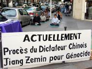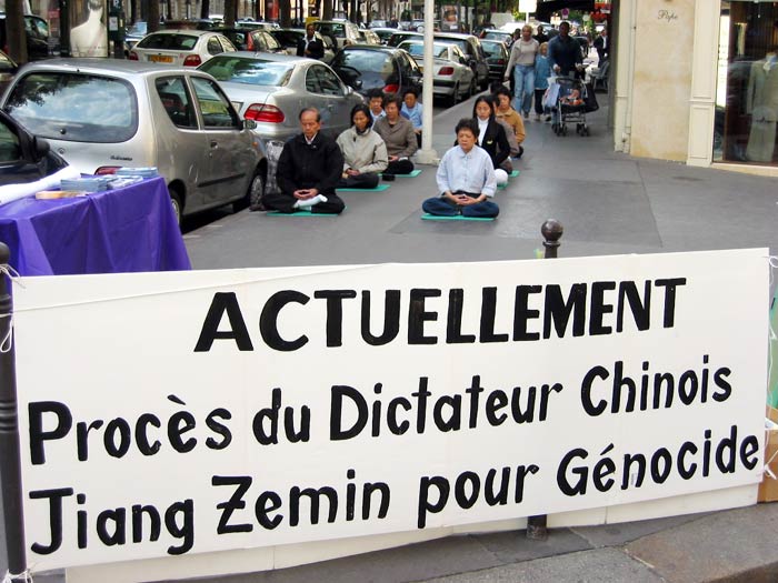法国大法弟子中国使馆前发正念 支持审判邪恶之首江XX(图)