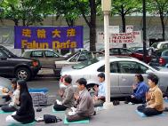 丹麦大法弟子在中国使馆前发正念,支持对江××的正义起诉(图)