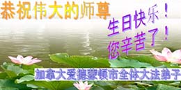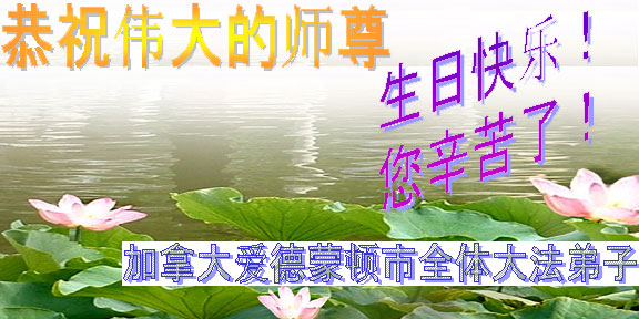 加拿大哈立法科斯全体大法弟子祝师尊生日快乐,我们会用我们的正念与正行,做好师尊教导的学法、发正念、讲真相三件事, 去掉一切不纯、圆容好大法, 不辜负师尊的慈悲苦度。请师父放心。