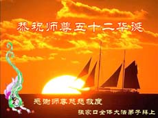 在师父五十二华诞之际,郑州大法弟子祝贺伟大的的师尊生日快乐!弟子们一定不辜负师尊的慈悲苦度,做好当前三件事,走好最后一步,以弟子们的大圆满共迎普天同庆以慰师心!