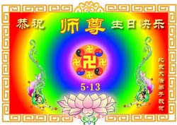 2003年5月13日,是“普天同庆、同祝、同颂”的日子,师尊传法十一周年纪念日和世界法轮大法日。鞍山全体大法弟子向慈悲伟大的师尊致以最崇高、最纯正的敬意“师尊您好!”“同祝全世界大法弟子节日好!”