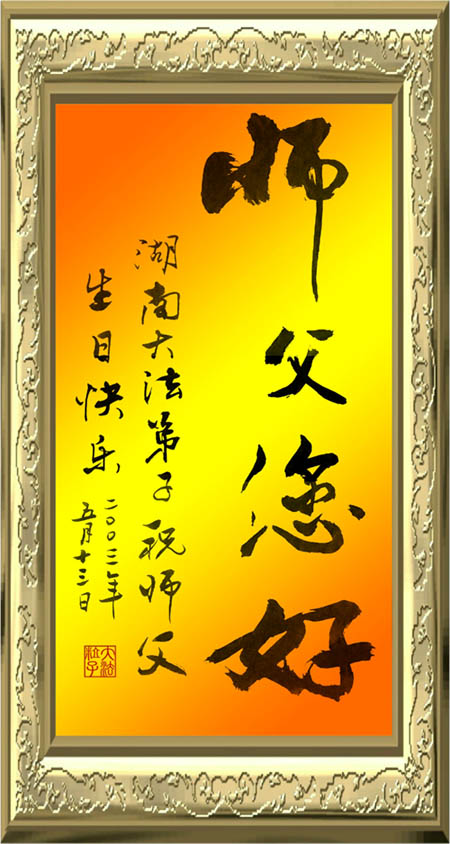 在法轮大法洪传十一周年之际,全体辽阳大法弟子向恩师致以崇高的敬意“师尊您好!”,向全世界大法弟子问候:节日好!