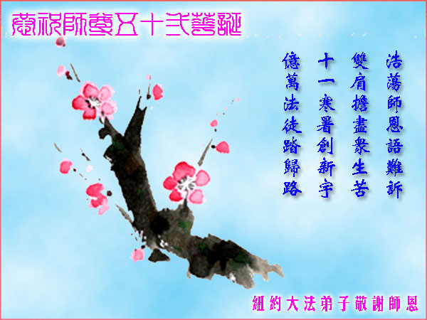 在师父52岁华诞之际,谨向师尊表达我们深深的敬意。请师父放心,我们已经走向成熟,不断地在法上提高,在正法修炼的最后宝贵时间里,互相配合,共同精进。