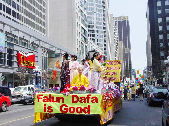 随后学员们来到了唐人街吃午饭,中区唐人街的9家华人餐馆为这次庆祝活动提供赞助。在SARS(非典肺炎)肆虐、华人受害最深时刻,多伦多法轮功学员秉着“真、善、忍”的精神,为重建多伦多旅游城市的形象而努力,和多伦多华人携手同心、共度难关。其中一餐馆的老板说,“真善忍好啊,我以后也要炼法轮功的。”最后餐馆工作人员还和学员们合影留念。