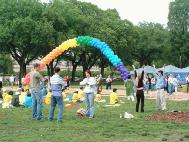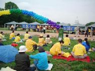下午,天空突然转阴,接下来下起了大雨。这时,一位弟子十分坚定地对大家说“我们今天是来这里庆祝世界法轮大法日的,我们决不接受任何的干扰,让我们一起来发正念排除干扰。”经过15分钟的发正念后,雨很快就停了,太阳又出来了,接下来的整个活动得以顺利进行。本来天气预报是说这一天将有整天的大暴雨,可在大法弟子的正念之场的作用下,我们的庆祝活动非常的成功,吸引了大量的世人,真正地达到了洪法、讲清真相、救度世人的目的。这也体现了当大法弟子正念强时,主掌天地正人道的气势。