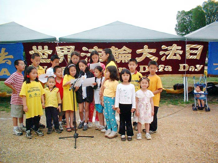 接下来另一位西人弟子演唱了她自己创作的欢快的庆祝歌曲,歌颂法轮大法给人们带来了美好的人生。身着民族古典盛装的弟子们表演了优美的仙女舞,明慧学校的小弟子们演唱的动人的大法弟子编写的歌曲吸引了大量的游客,西方学员的配乐诗朗诵展现出的大法弟子面对邪恶残酷迫害所体现的大善大忍与金刚不破的正信正念更是令人动容。