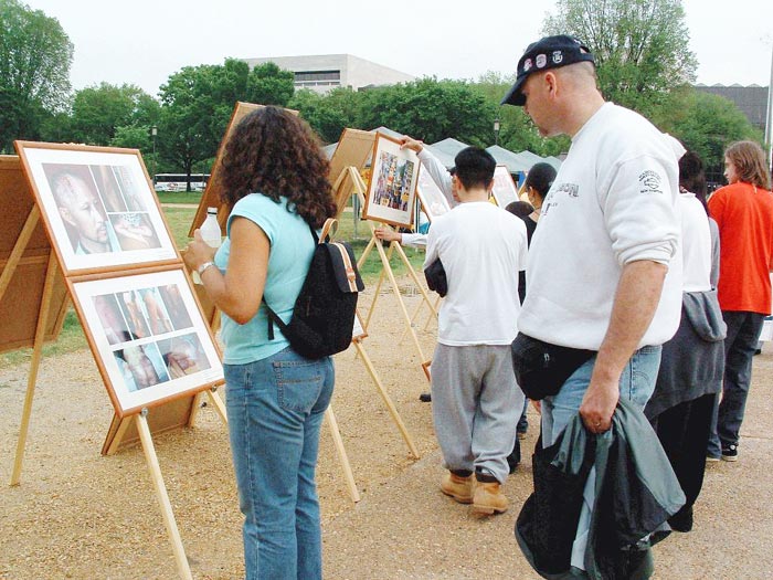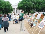 与此同时,展出的“正法之路”图片展更是吸引了大批游人的目光,人们仔细地看着图片,认真地阅读着大法弟子们递上的真象资料,并不时地提出一些问题。一位大陆代表团的游客说:“其实国内的人也知道真象,我认识的法轮功的人都是很好的人。”