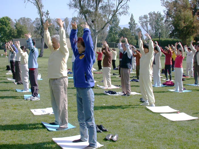 洛杉矶大法弟子集体炼功庆祝世界法轮大法日【明慧网2003年5月12日】