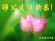 几年来随师正法,多次亲耳聆听师父教诲,深深体会到了师父对众生的洪大慈悲和对众弟子倾注的无限心血。在此师父的生日来临之际,弟子拜谢师父的慈悲苦度,在此后的修炼道路上,一定做好师父叮嘱的三件事,“修得执著无一漏”,请师父放心!
