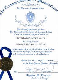马萨诸塞州众议院向李洪志先生和法轮大法致以最衷心的祝贺 !