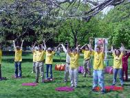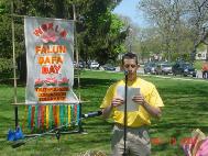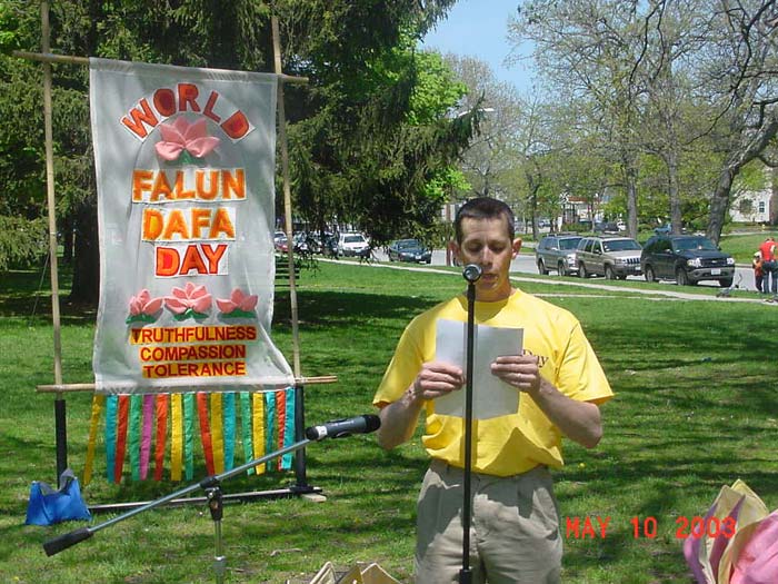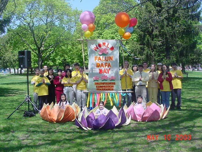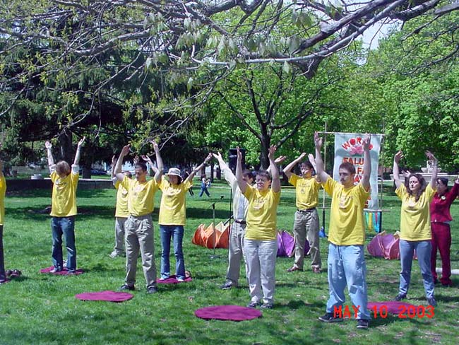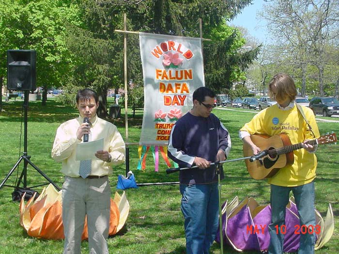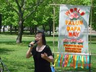 庆祝活动于12点正式开始。主持人向观众介绍了大法洪传,并回顾了四年来学员向世人讲清真相的历程。学员们纷纷用歌声表达美好的祝愿。美妙的歌声令听众感动。有一位西人学员向大家介绍了自己的修炼体会,并发自内心的告诉大家“法轮大法好”。