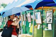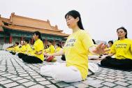 三个多小时的车程来到中正纪念堂广场后,之前的疑虑便一扫而空。广场上熙熙攘攘满是来往的人群,原本朋友电话中告知已经连日阴霾的台北市天气,也放了个大晴天,广场上的台北市民似乎也感染了大法弟子的活力与大法日喜庆的气氛,放下了行色匆匆的神情,纷纷驻足、观赏功法表演活动,或排队等候由中西医师学员提供的免费健康咨询服务,或悠闲地逛着园游会各式各样的摊位,或聚精会神细心观看一幅幅真相纪录图片,更有外国女孩在看完集体功法表演之后,向我们询问是否有英语人士可参加的炼功点。