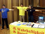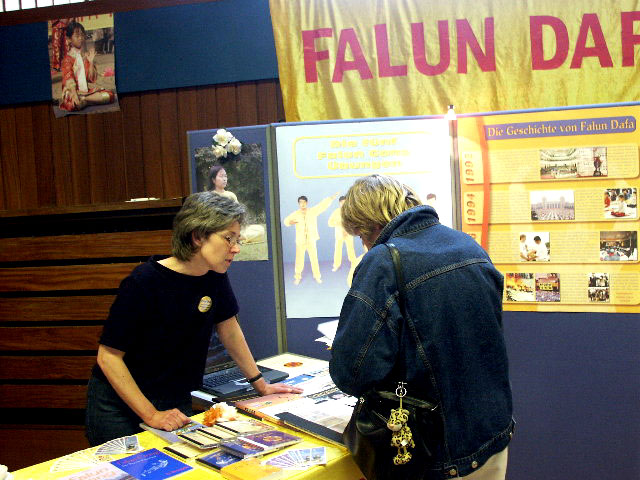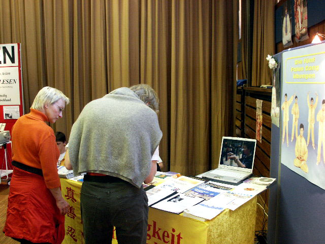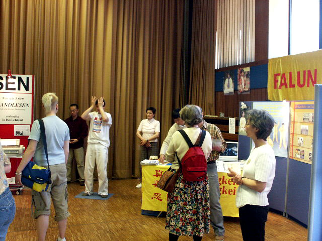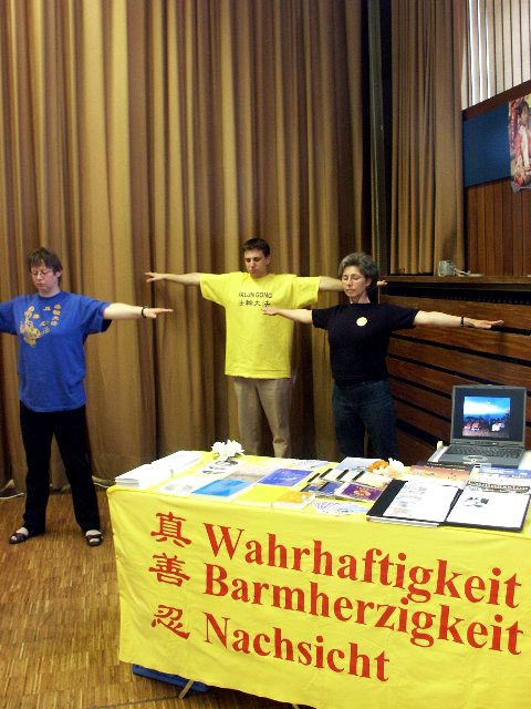 一年以后博览会再一次举行,这一次汉诺威的新学员强烈希望能再一次参加奥秘博览会。他们回忆起了第一次接触法轮功的经历,纷纷希望有更多的人能够走进来。这一次我们有充分的准备。在那三天里,我们有美好而有趣的经历。这次法轮功也有很多观众。
