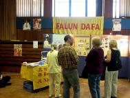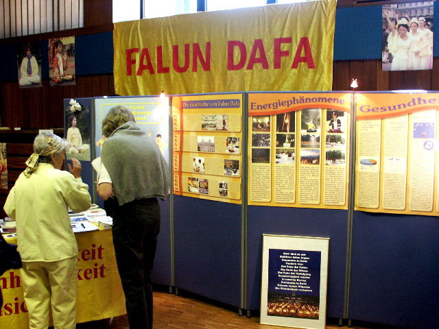 这个周末从星期五到星期天是汉诺威第三次举行奥秘博览会。整个德国北部的学员都衷心的支持我们。一些学员准备好了一切所需,我个人认为,这一次真的展现出了大法的威严。他是公开和高尚的。我们展示了功法并同一些博览会的来宾们交谈。许多人通过这种方式了解了法轮功学员的优点以及在中国江氏集团对法轮功的迫害。在博览会里有两个报告,一个是关于经济的,另一个是关于法轮功的综合报告。因为只有少部分学员能够留在展台,所以其他学员就有效的利用时间在一起学法、交流。