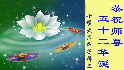 在师父五十二岁的华诞之际,谨代表黑龙江省齐齐哈尔市的大法弟子祝师父生日快乐!并问师父好!我们一定会谨记师父的话,不让师父伤心,不让自己后悔,不错过这开天辟地的万古机缘!