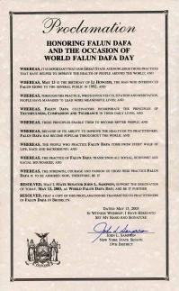 并决定将一份嘉奖令送给布鲁克林的法轮大法学员。