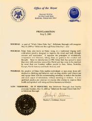 鉴于,作为世界法轮大法日的一个组成部份,贝利方特自治市将确认2003年5月13日为“贝利方特自治市法轮大法日”;并且