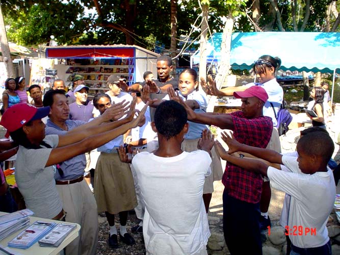 最后该参观者对我们的功法非常满意并且感谢我们用了这么多时间向她解释和教功。我们给了她一本书,她承诺她会修炼法轮功并且会让他在古巴的哥哥也修炼。