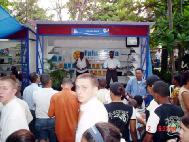 2. 一位女士看到我们的横幅后,便立即被“真、善、忍”三个字所吸引,情不自禁读出声来。她面带惊讶和好奇,来到我们展位询问这个功法。当向她解释我们如何按照这些原则变得越来越好时,她一语说到了点子上:“……这正是人们需要的。如果人们都按照这个做,人类的道德就会回升……”