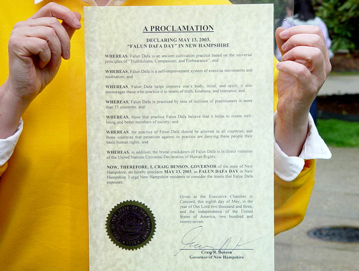 法轮功学员在新罕布什尔庆祝法轮大法日(图)