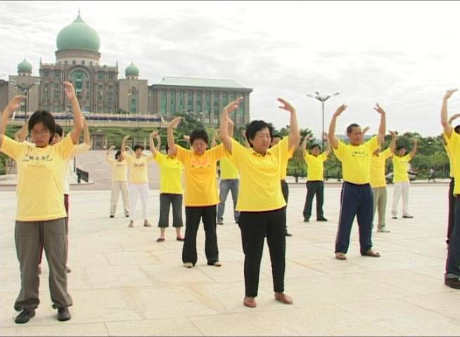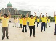 | 集体谈修炼体会 | 2003年5月13日在马来西亚吉隆坡双峰塔下庆祝世界法轮大法日 | 在 Putrajaya 集体炼功 |
