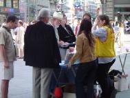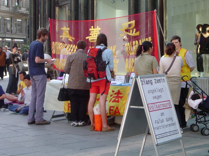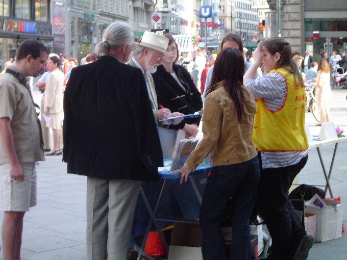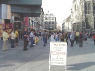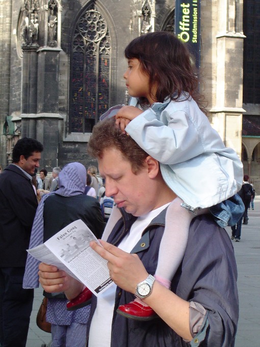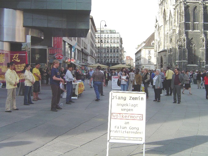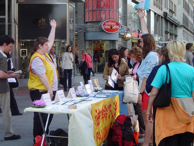 【明慧网2003年5月19日】继5月13日后奥地利大法弟子于17日再次在维也纳市中心举办活动,庆祝法轮大法洪传11周年。