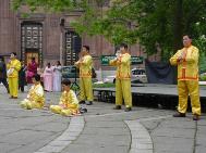 各位来宾讲话过后,法轮功学员的功法表演拉开了亚洲传统文化节目表演的序幕。学员祥和,宁静,舒缓的功法表演向前来观看的各族人们展示了大法的美好。