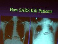 香港医生对十个病例症状进行比较分析发现,每个SARS病人都有发烧现象,其它症状还有咳嗽和肌肉酸痛等。从X光透视医生们发现病人肺叶从底部开始病变,组织切片表明肺细胞发炎充水,病人象溺水的人窒息而死。