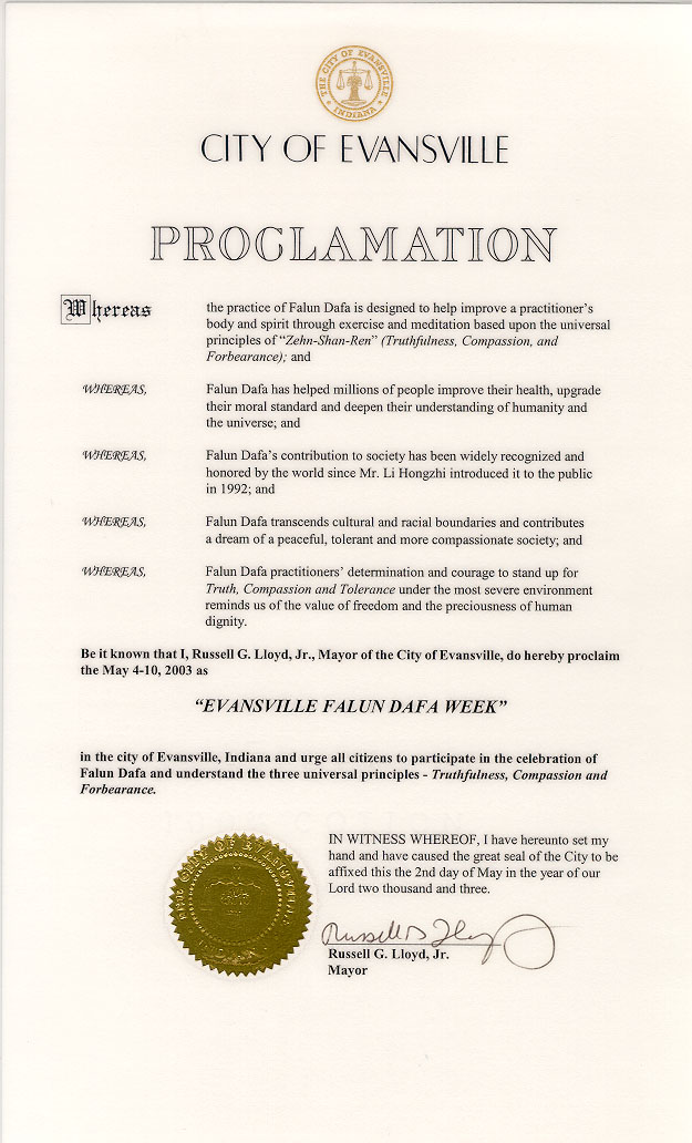 鉴于,法轮大法自1992年由李洪志先生公开传授以来,其对社会的贡献被世界广泛认同和嘉奖;并且